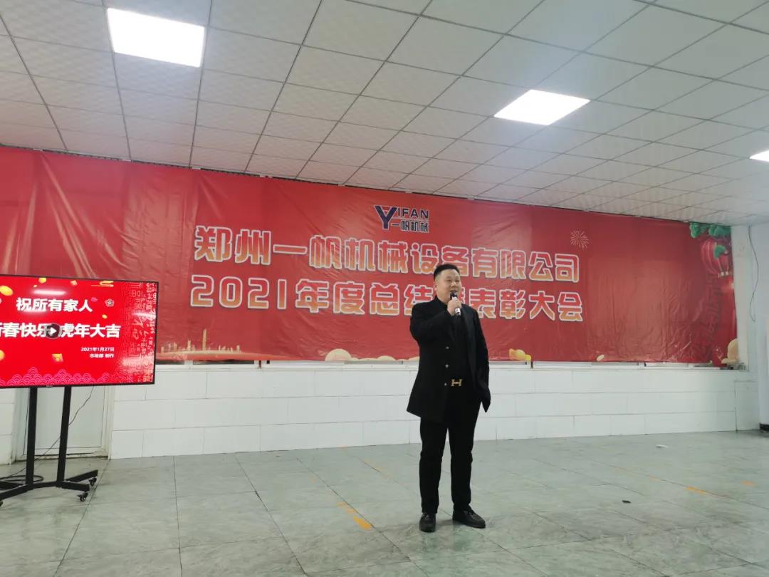 1月28號(hào)(臘月二十六),鄭州一帆機(jī)械設(shè)備有限公司(以下簡(jiǎn)稱(chēng)“鄭州一帆機(jī)械”) 召開(kāi)了2021年度工作總結(jié)暨表彰大會(huì)。會(huì)議總結(jié)了鄭州一帆機(jī)械2021年的工作成果,分析了當(dāng)前面臨的形式與挑戰(zhàn),表彰了工作成績(jī)突出的先進(jìn)集體及個(gè)人,部署了2022年的重點(diǎn)工作。公司總經(jīng)理張現(xiàn)團(tuán)先生、公司副總經(jīng)理代華雷先生、總工程師周衛(wèi)東先生、公司領(lǐng)導(dǎo)劉喜民先生及公司全體職工參加了會(huì)議。