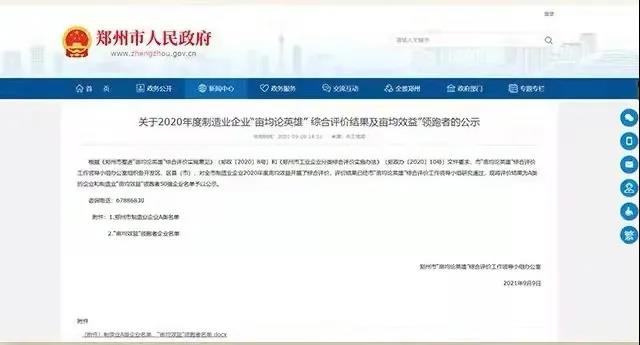 被認(rèn)定為鄭州市“制造業(yè)畝產(chǎn)論英雄”A類(lèi)企業(yè);