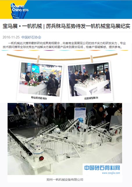 此外,本次一帆機械展會期間也受到了眾多媒體的關注,砂石骨料和破碎篩分行業(yè)的專業(yè)平臺也對一帆機械此次寶馬展上的表現(xiàn)給予稱贊,其中中國砂石協(xié)會網(wǎng)、中國砂石骨料網(wǎng)、中磚網(wǎng)等平臺也以文字和圖片形式對寶馬展上的一帆風采進行了跟蹤報道。